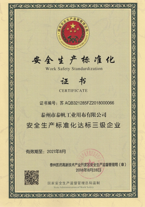 安全生產標準化證書